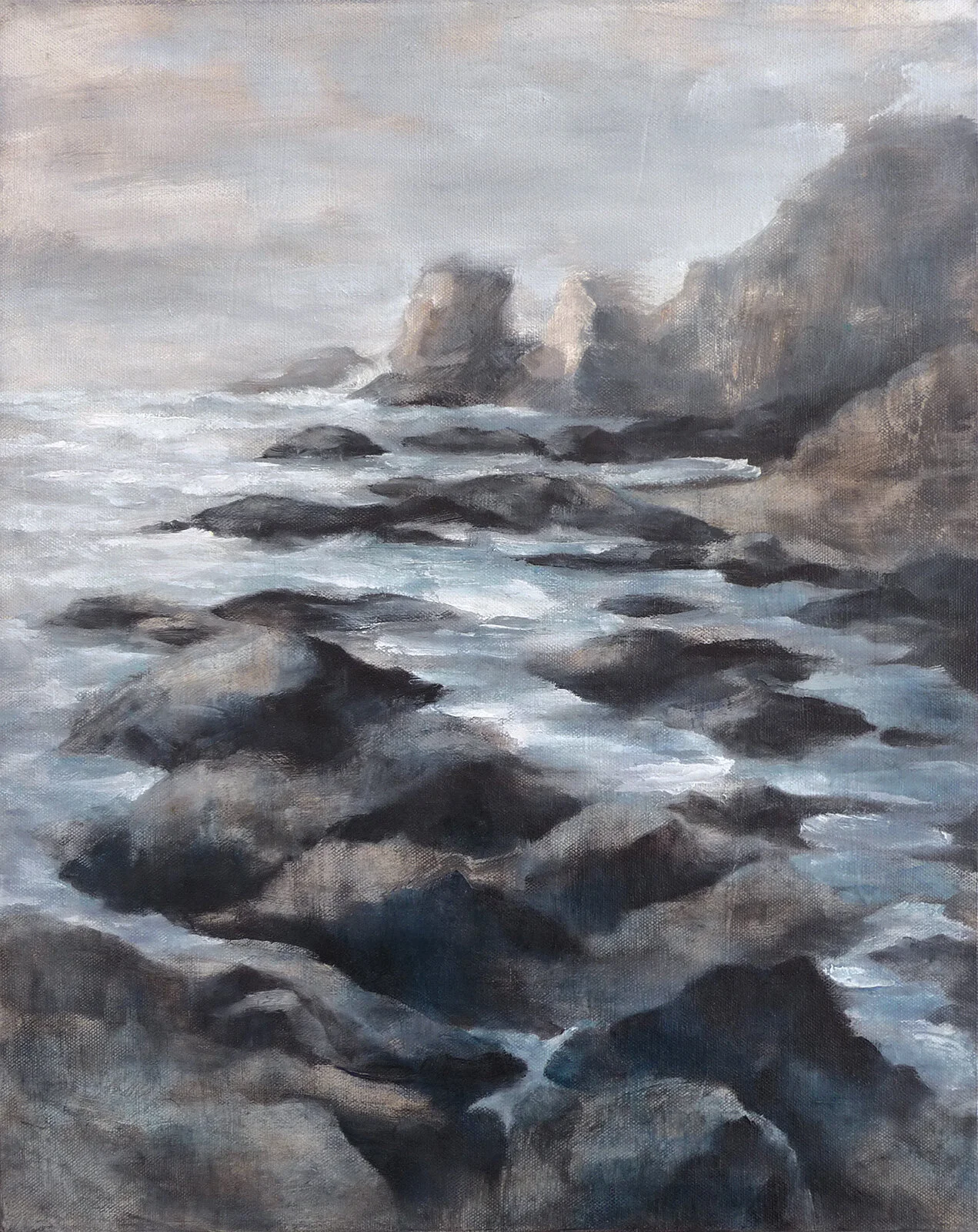 A handful of my NorCal-inspired seascape and cityscape paintings are on exhibit at Avenue 12 Gallery in San Francisco, including a piece I finished just last week of a rocky shore near Elk, CA. Also in the gallery is a small painting of Nob Hill, a large 48x64 composition depicting Sutro Baths, and six other paintings of Ocean Beach in SF. Visit my page on their website for more information. Or better yet, stop by the gallery to see the work in person.